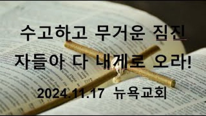수고하고 무거운 짐진 자들아 다 내게로 오라! | 마태복음 11:28-30 | 김성기 목사 요약 영어 설교 : 김재형 목사 | 2024-11-17 |